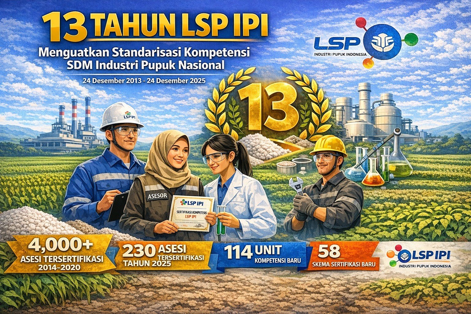 LSP Industri Pupuk Indonesia berdiri pada tahun 2014 dimana pendiri LSP Industri Pupuk Indonesia meliputi unsur Asosiasi ( APPI ) dan unsur Industri ( Pupuk Indonesia Group )
