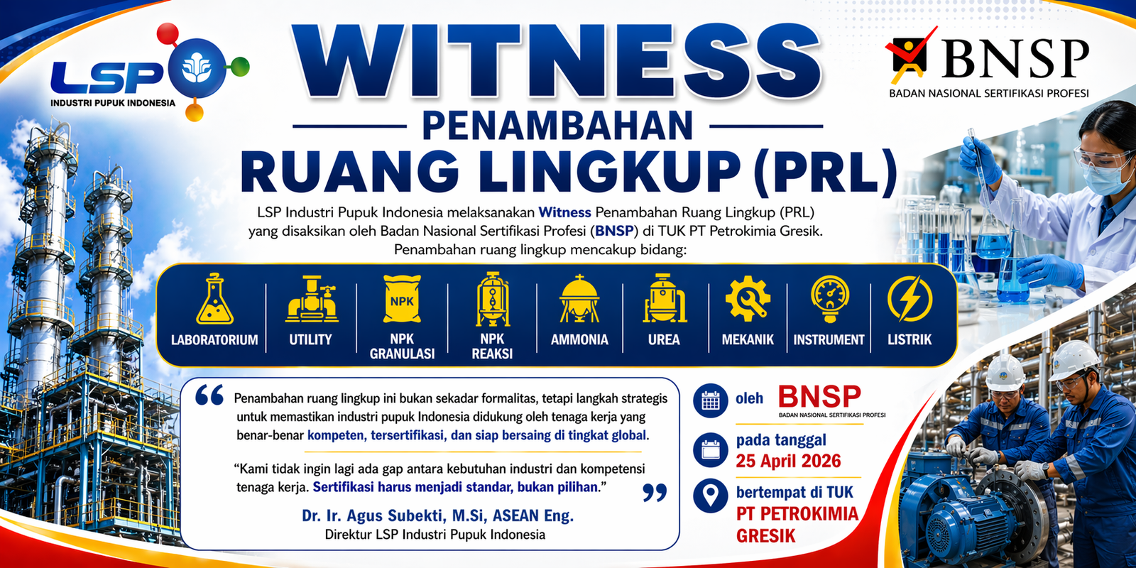 | 2 | Pelatihan dan Sertifikasi Klaster Operasi Urea Prilling ACES Konvensional TRCPupuk Iskandar Muda Aceh ( 10 November 2025 - 13 November 2025 ) |