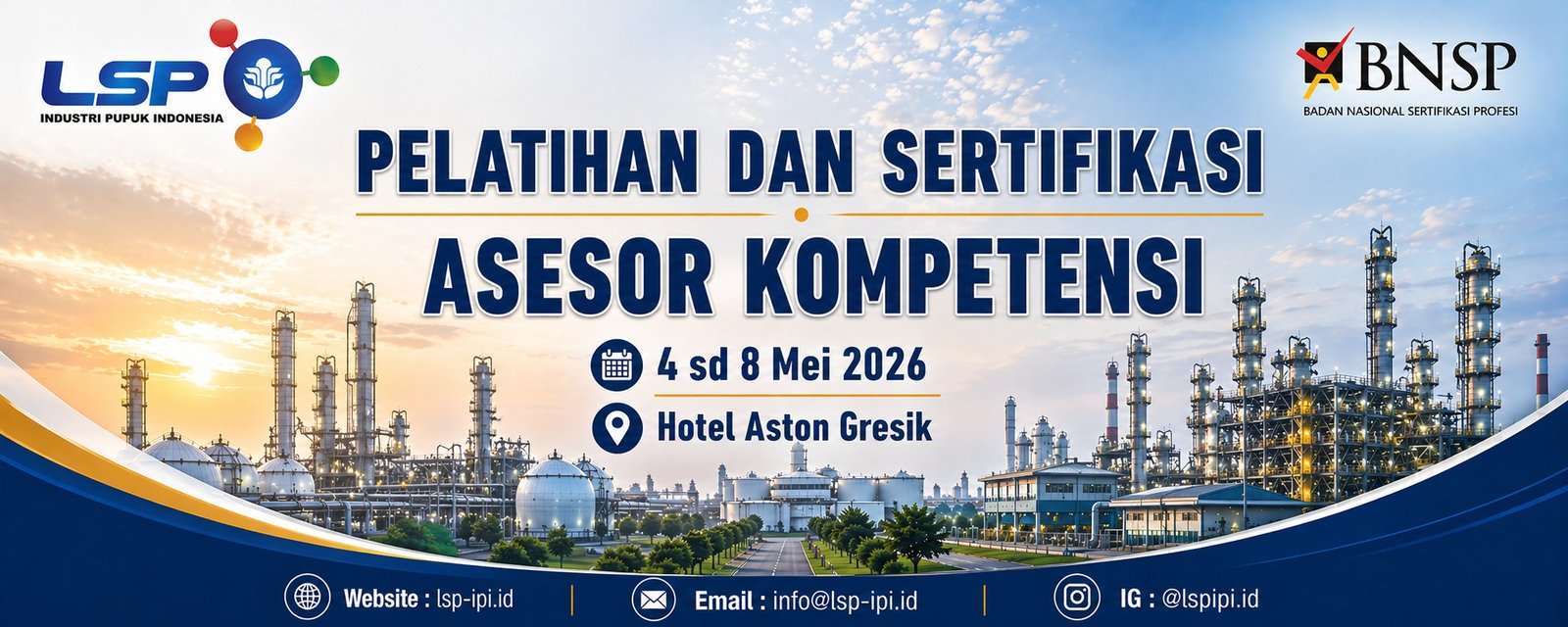 | 1 | Pelatihan dan sertifikasi Klaster Amoniak operasi Steam System & Shift ConverterPupuk Iskandar Muda Aceh ( 10 November 2025 - 13 November 2025 ) |